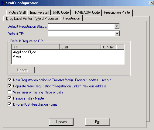 The Registration tab in the Staff configuration screen allows you to choose the defaults for some of the options in the Registration module. Unless changed, the Registration Configuration defaults are as below: