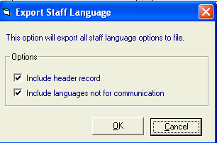 - Include languages not for communication - This is checked by default and exports staff information, including staff id, staff name and languages. Removing the tick will stop this information from being exported.