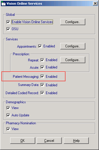 To enable this patient messaging, simply tick Patient Messaging Enabled.
