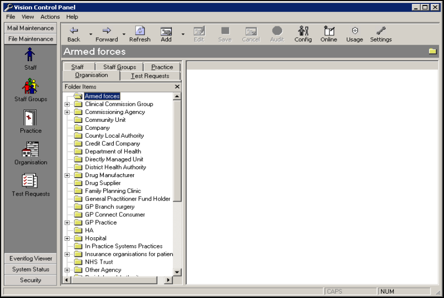 Organisation tab