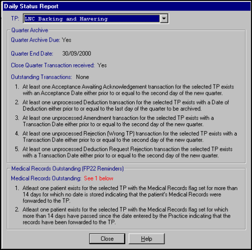 A quarterly archive cannot be undertaken for a TP until a Close Quarter Notification transaction has been received from that TP. If the Close Quarter Notification transaction is not received, in exceptional circumstances the quarterly archive for a TP may be run from an option in Security – Quarterly Archive within Registration Links.