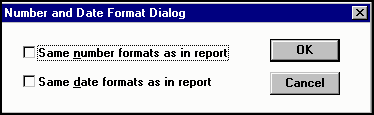 - You may be prompted for further options, such as the format of Numbers and Dates, if for example, you have chosen tab separated; or the separator options. In this case, if you want these the same as the report, check the boxes. Select OK.