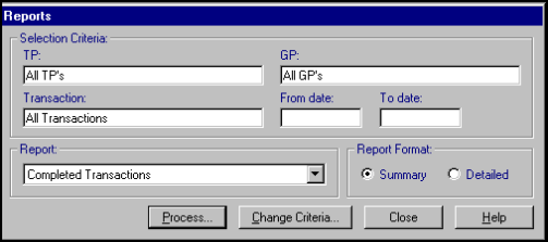 . - The default for the reports is all TPs and all GPs. If you want to change these criteria, or the date range, which can be specified in From Date and To Date, see Change criteria.