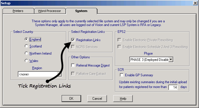To switch on Registration Links: