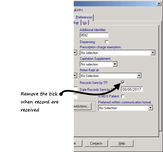 - Remove the tick from box Records Sent by TP.