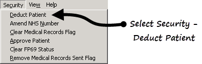 - From Registration , select Security - Deduct Patient: