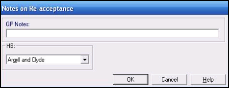 For practices in Scotland, if the deduction is a Removal to new TP/HB/CSA you see the Notes on Re-acceptance screen when you re-accept the patient: