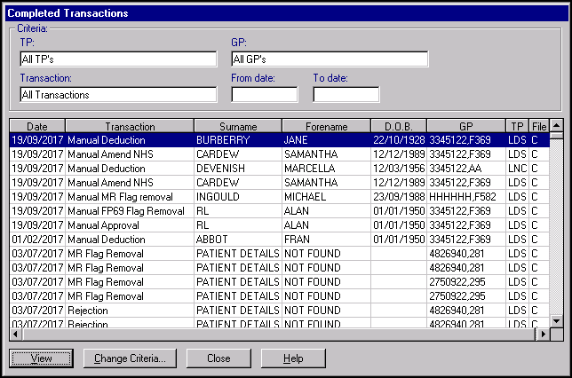 . - Select Completed Transactions and the list of completed transactions displays. Highlight the transaction you require and then select View: