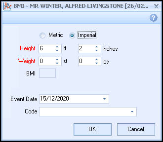 - From Consultation Manager, select the Vision+ alert screen, highlight the indicator and select BMI