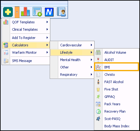 or select Vision+ from the floating toolbar and select Calculators - Lifestyle - BMI: