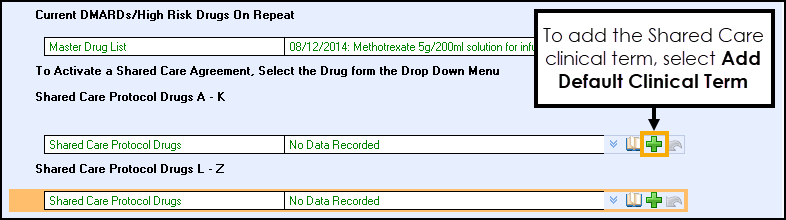 - The clinical term 8BM5 - Shared care prescribing is automatically recorded and you are prompted to select the patient's medication from the comments box: