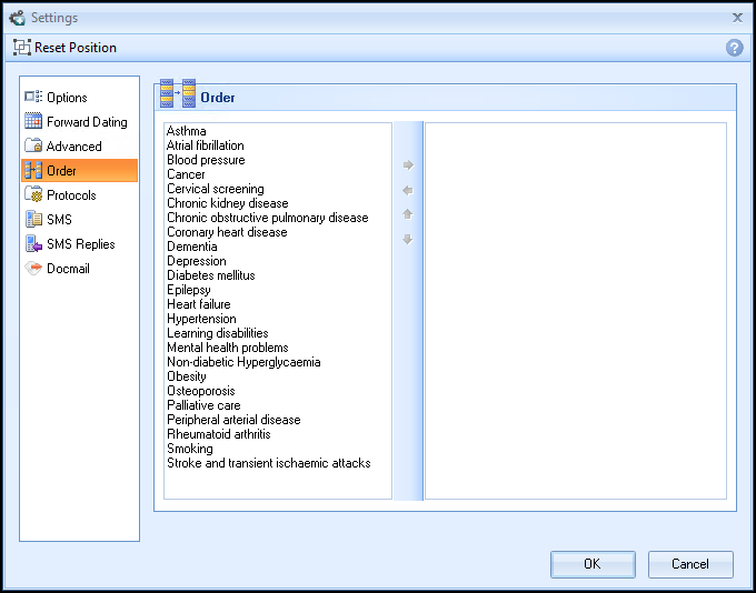 The Order tab of the Settings screen can be used to alter the order of the Contract Indicators. Normally the Contract Indicators are ordered alphabetically.