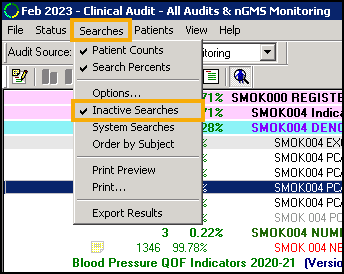 Searches can be removed at audit group level. This deletes all the searches within the clinical category, it is good practice to delete any searches that are no longer required: