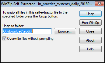 4. When prompted, select Yes to the message 'Please do not change the default location. Files extract to O:\Download\Audit. Do you wish to continue?':