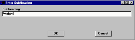 - Then type in the sub-heading title - for example, Weight.