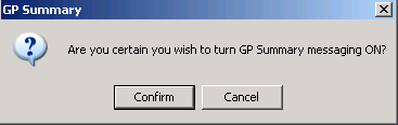 - You are then prompted "Are you certain you wish to turn GP Summary messaging ON?" Click Confirm.