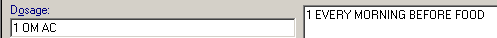 Or type a dosage code in directly - click with the left mouse in the Dosage window (the top narrow one) and type in the abbreviated code.