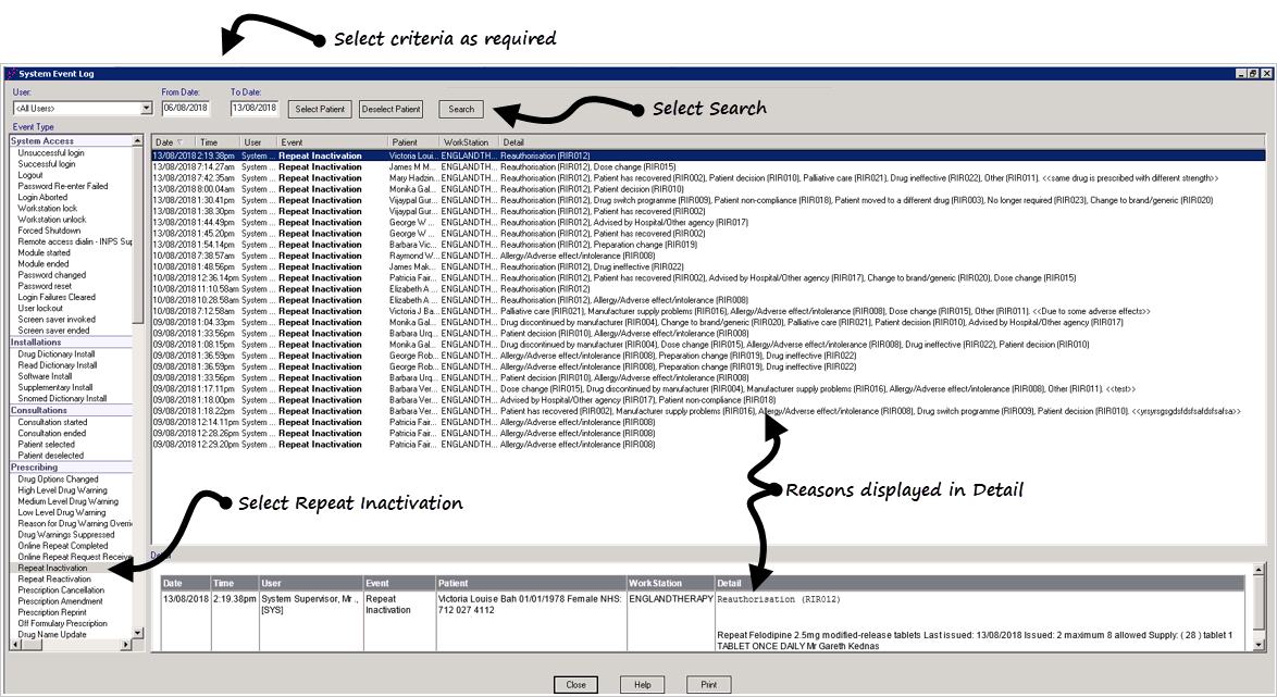 Inactivation and Reauthorisation Change Reasons are displayed in the order they were selected, followed by any additional comments indicated by <<text here>>. For a reauthorisation, the first reason is always Reauthorisation. Recorded reasons can be viewed from: