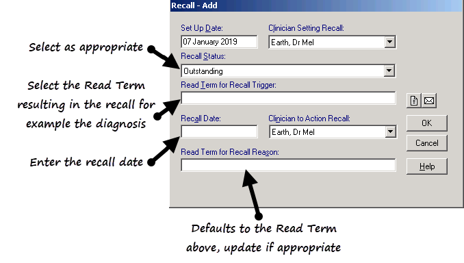• Clinician Setting Recall - Defaults to the staff member or GP signed on for the current session, update as required.