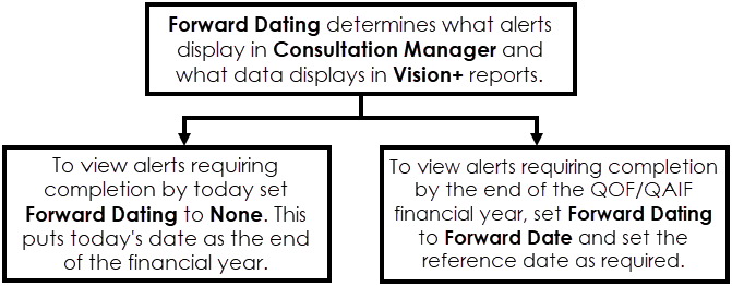Note - For each new QOF/QAIF year Vision+ automatically reverts Forward Dating back to None (today's date). Depending on your practice preference you may want to change this per individual user login.