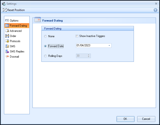 The diagram below explains the settings you may initially require for forward dating: