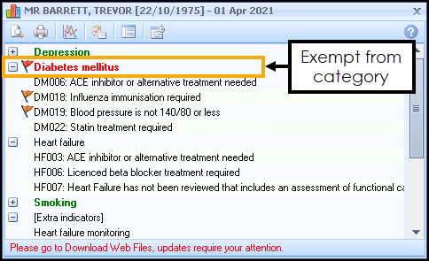 A red flag indicates a category has been exception coded in the current QOF/QAIF year. |