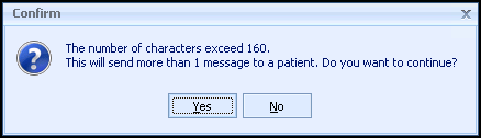 There is a limit of 160 characters per SMS message. A warning displays if the number of characters exceed 160: