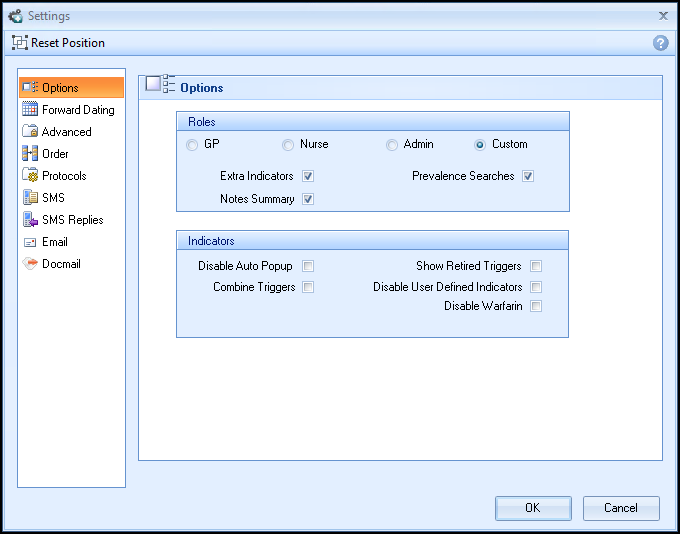 and select Settings (make sure you do not have a patient selected in Consultation Manager). From the options screen, deselect disable auto pop-up and select OK: