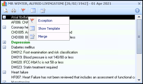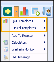 - Alternatively, you can select QOF/QAIF Templates or Clinical Templates from the Vision+ menu on the floating toolbar