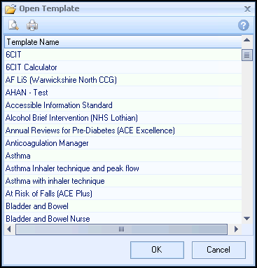 . - Select a template to be edited from the Open Template screen.