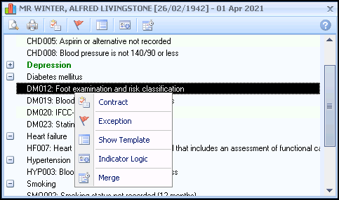 For example, you can quickly access Contract codes from the Alerts screen in Consultation Manager: