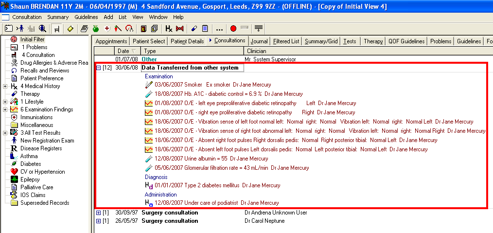 Amended data sent via SCI-DC replaces the original transmitted entry in Consultation Manager and as such does not display differently in the journal. You can look at the audit trail of an entry to see the history of amendments, right click on it and select Audit Trail. Previous changes are highlighted in red.