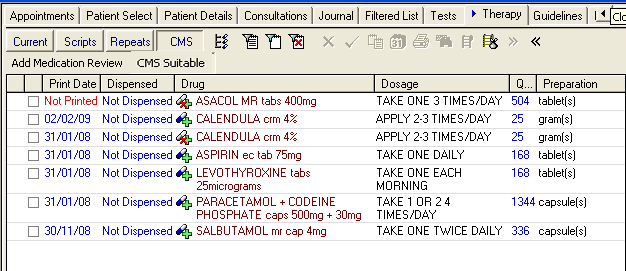 You can view inactive/cancelled CMS (Serial Prescribing) items from Therapy - CMS filter in Consultation Manager: