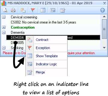 If you right click on an Indicator line a menu appears showing the options available for that particular Indicator. The menu is essentially the same as that shown on the toolbar.