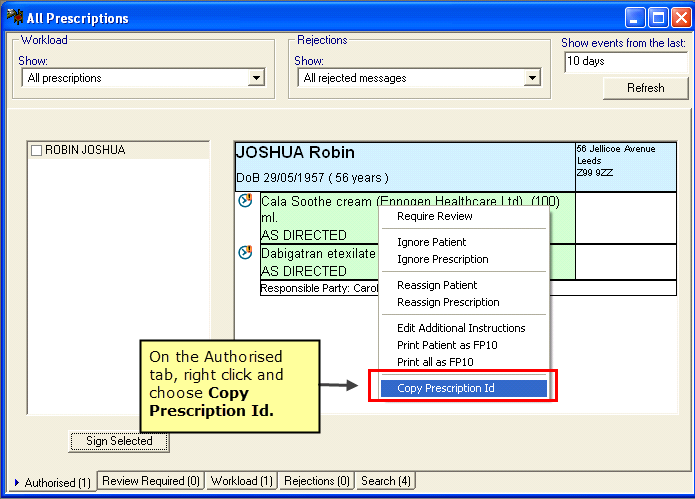 Copy Prescription Id EPS2 - Authorised tab