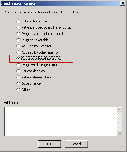 - When prompted, select Adverse effect/Intolerance as the inactivation reason.
