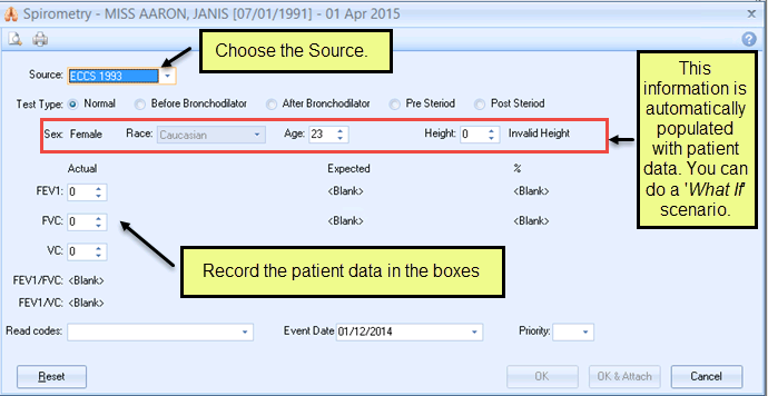 To use the Spirometry Calculator you do the following: