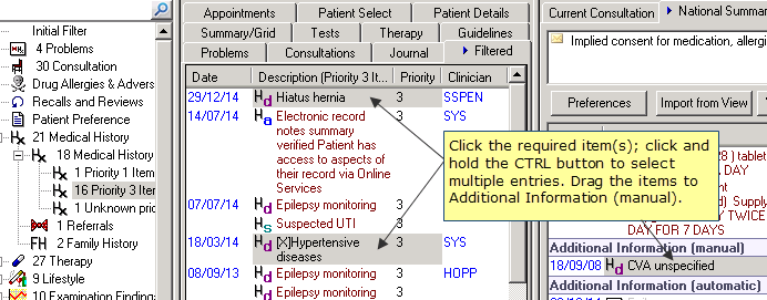 - In Consultation Manager, select a patient, open a consultation and view the National Summary.