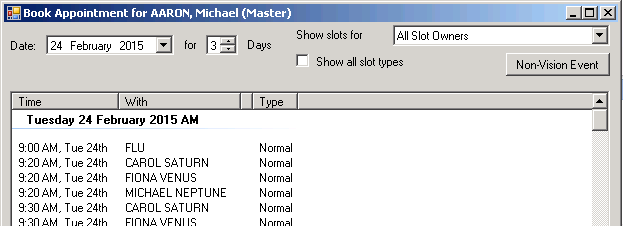 Note - Non-Vision Events are only available in the diary and are not written back to Vision appointments. Non-Vision appointments are not currently seachable.