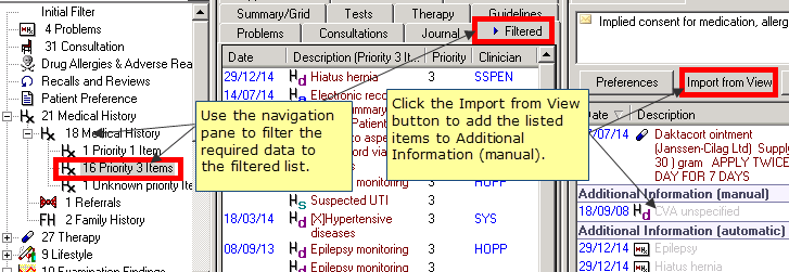 - Use the navigation pane to filter the patient record so the data you want to add displays.