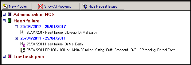 - Indicated in the problem list by a blue sub-heading of the episode start date immediately before the most recent item in the episode, select the heading to collapse or expand the episode to view the data within it.