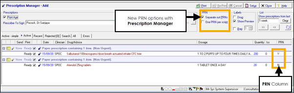 PRN Box - Remove the tick from the PRN box to print/send PRN drugs on the same prescription as non-PRN items