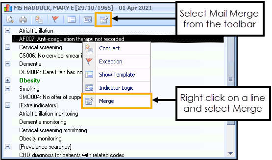 Note - The following options are also available when performing a mail merge on a group of patients in Practice Reports and some of the options are more suitable when working on a group of patients.
