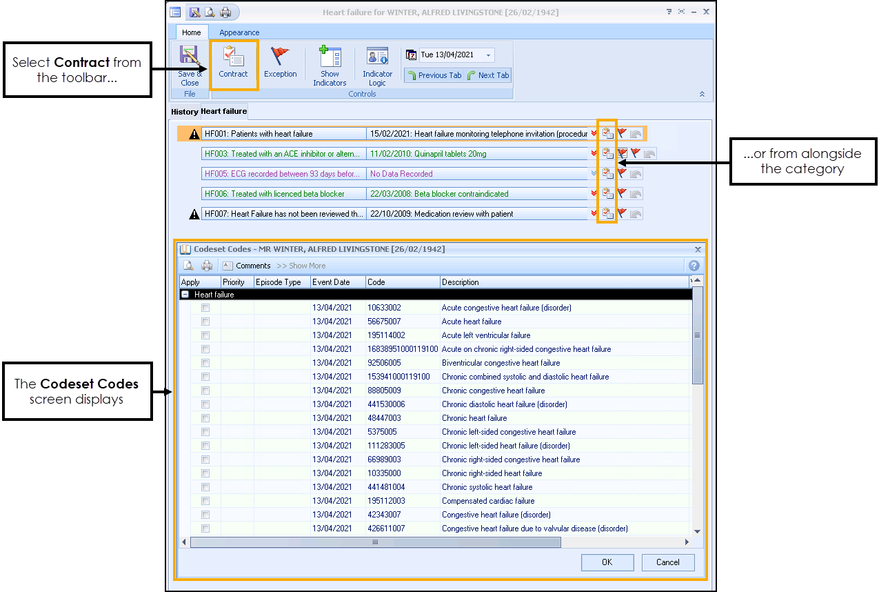 from a template takes you to the Codeset Codes data entry screen where codes can be chosen from a predefined list of relevant clinical terms: