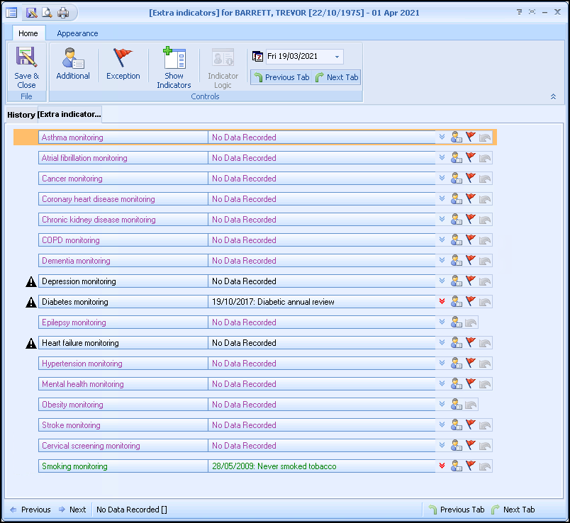 Vision+ provides Extra Indicators which are used by the practice for recall purposes and help monitor the QOF/QAIF disease category recalls.