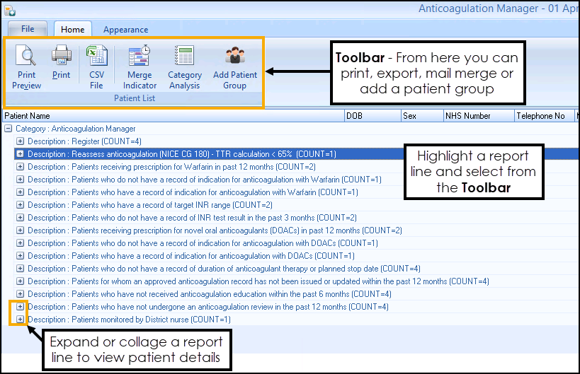 There is a comprehensive suite of pre-defined Anticoagulation Manager Reports built within Vision+. From here you can work on patient lists or use the integrated mail merge facility. In addition there is a specific Warfarin Monitoring tool that will assist in managing your patients.