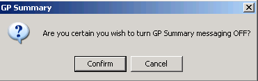 - You are then prompted "Are you certain you wish to turn GP Summary messaging OFF?" Click Confirm.