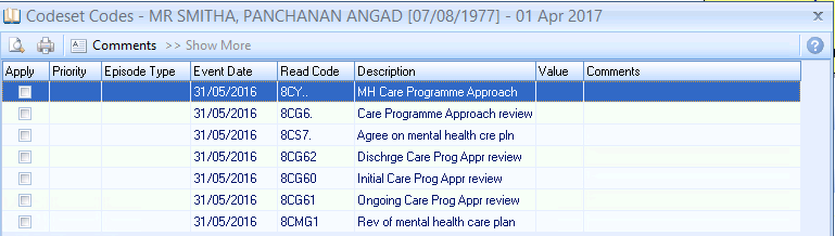 Show More Button - The QOF Read code list is quite exhaustive which is why the Read code list displays the most commonly used codes. Clicking Show More allows you to expand the Read selection.
