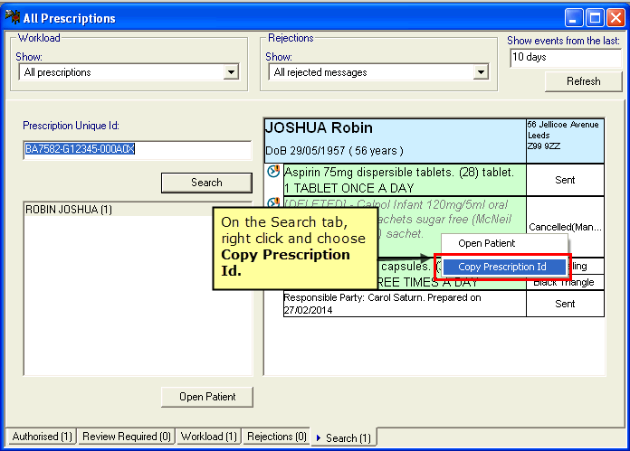 Copy Prescription ID - England EPS2 - Search tab