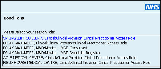 - If you have more than one role, the Session Role screen displays, select the role you wish to use.